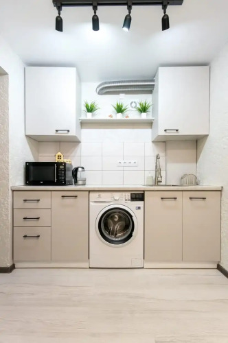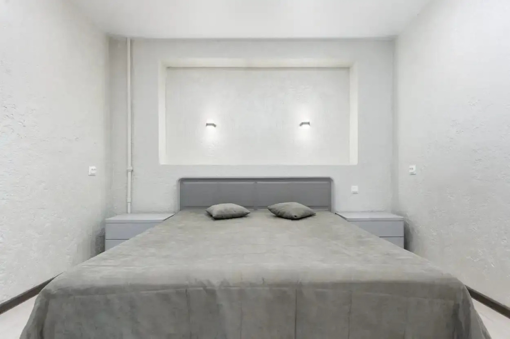 В апартаментах смогут разместиться 4 гостя. Квартира укомплектована необходимым для проживания и отдыха. Спальные места — двуспальная кровать и раскладной диван с полноценным спальным местом. В кухонной зоне располагаются холодильник, индукционная плита, микроволновая печь, чайник. Полный набор столовых приборов и посуды. Для удобства гостей установлена стиральная машина, есть высокоскоростной Wi-Fi, утюг, гладильная доска, фен.