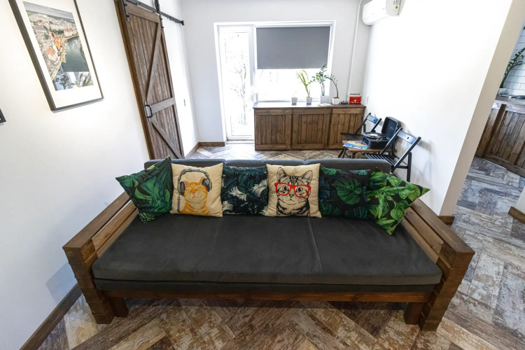 В распоряжении гостей есть проектор и виниловый проигрыватель с небольшой коллекцией пластинок, домашний кинотеатр на базе проектора и аудиосистемы JBL. В квартире деревянная мебель ручной работы, автоматическая кофемашина, кондиционер, стиральная машина, мини-холодильник с морозильной камерой, фильтр для воды , тропический и гигиенический души, утюг, фен, сушилка для белья, газовая плита, набор посуды для приготовления пищи, 2 двуспальных места. Гостям предоставляются: полотенца, постельное бельё, бытовая химия, шампунь, гель, зубная паста, зерновой кофе для кофемашины, чай.