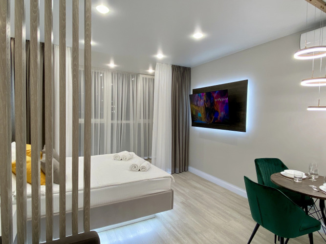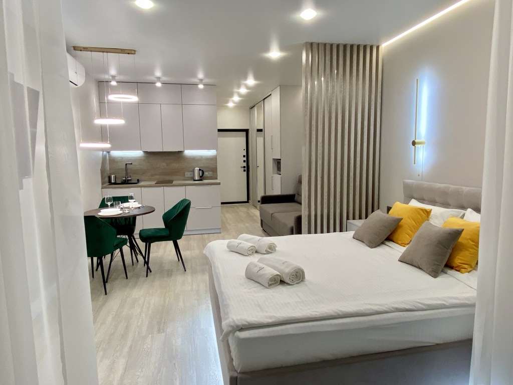 На территории работает бесплатный Wi-Fi. Уточняйте информацию сразу при заезде. Если вы путешествуете на машине, припарковаться можно будет на парковке рядом. Удобно для гостей с ограниченными возможностями: на верхние этажи гостей поднимает лифт. Сотрудники апартаментов поддержат беседу на английском и русском.
