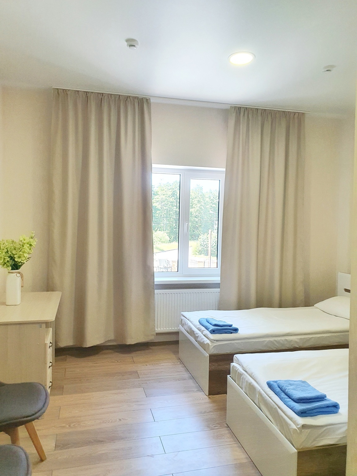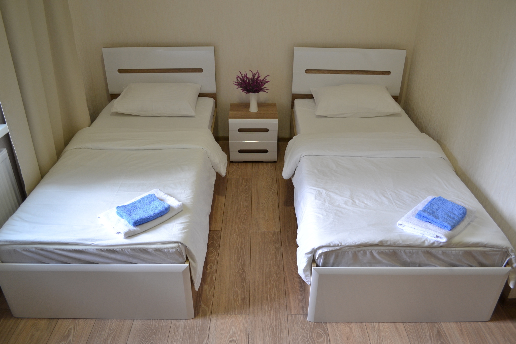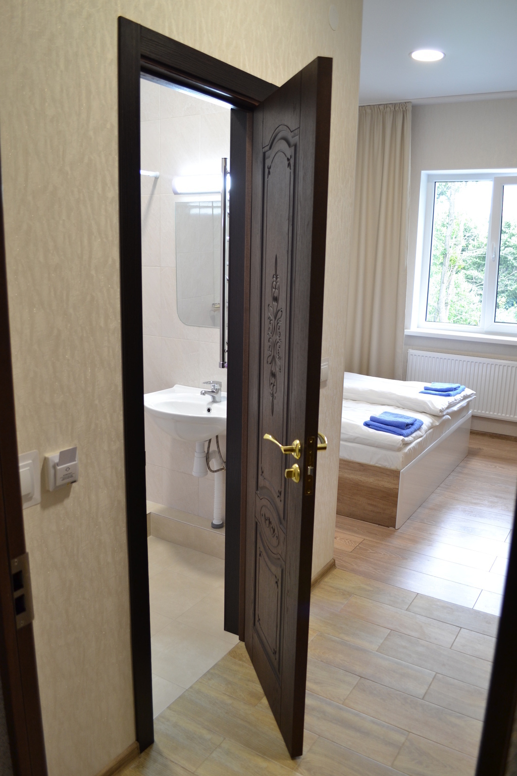 Гостям предлагаются гостиничные номера категории СТАНДАРТ (1 категории) - большие 2-местные номера с одной двуспальной кроватью или двумя полутора спальными кроватями и с возможностью разместить одно дополнительное спальное место в номере, оборудованные плоским телевизором с цифровыми каналами, холодильником, душем, феном и шкафом для одежды. Микроволновкой, кулером с холодной и горячей водой на этажах. Во всех номерах есть собственная душевая и туалет. Бесплатная охраняемая парковка для авто.