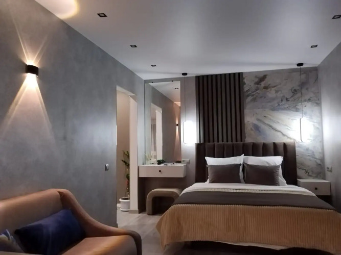 Чтобы вы могли отдохнуть после долгого дня, в номере есть телевизор и халат. Оснащение зависит от выбранной категории номера.