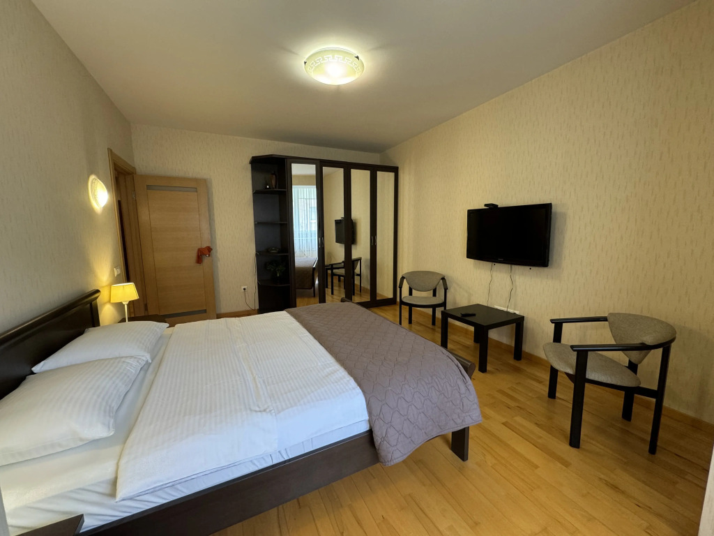 В номере гостей ждут телевизор. Оснащение зависит от выбранной категории номера.