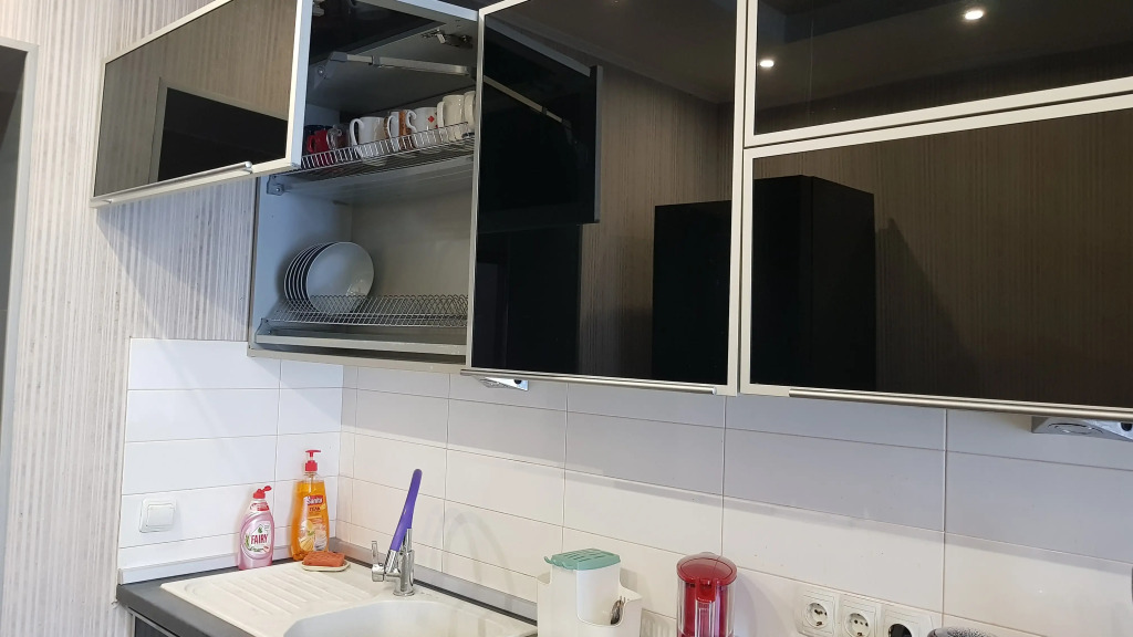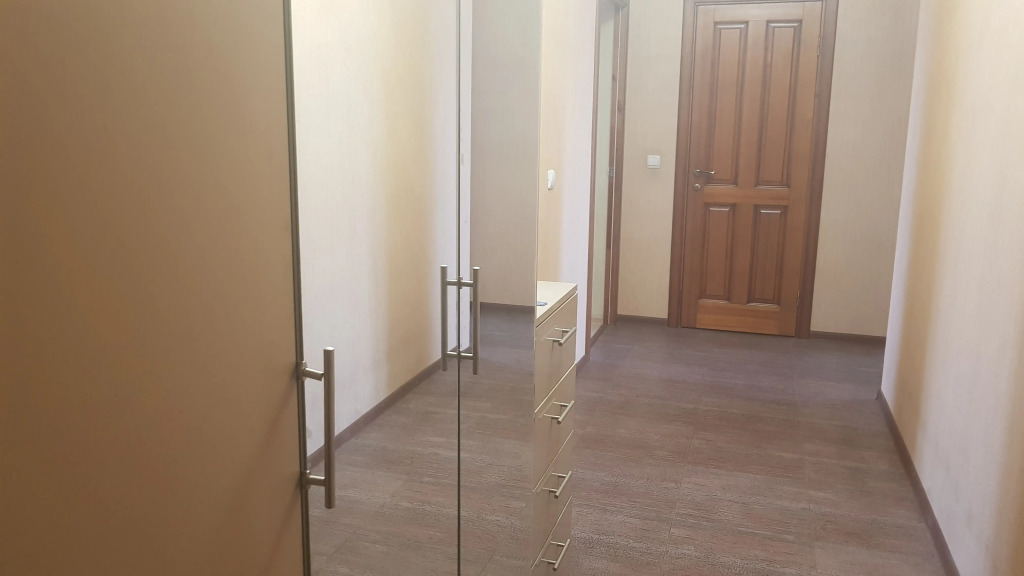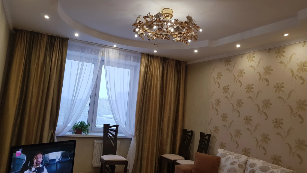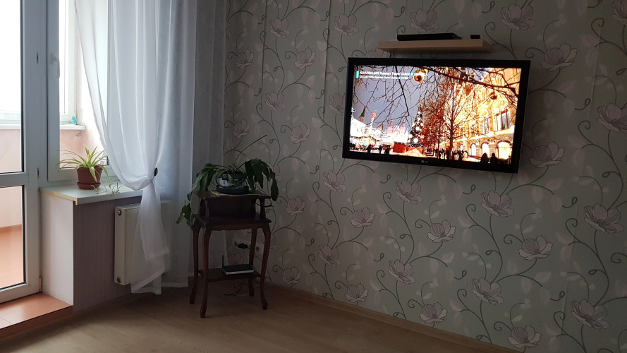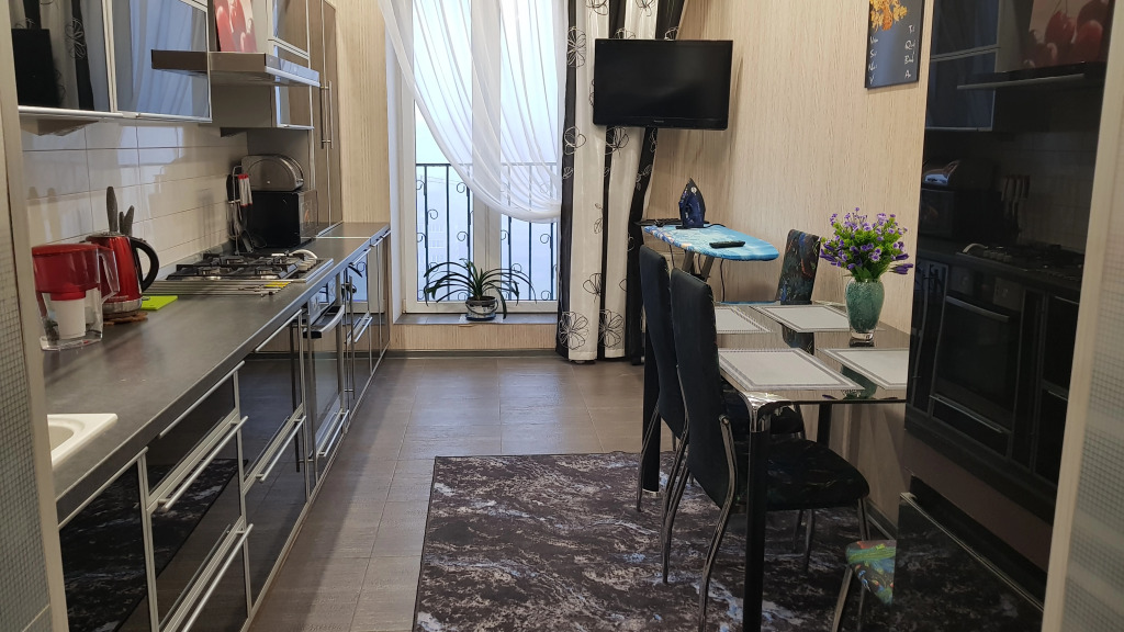 2-комнатная квартира площадью 58 кв. м расположена на 9 этаже 10-этажного здания с лифтом и закрытой территорией. Есть вид на улицу из окон кухни и зала. Квартира подходит для размещения 4 гостей: доступны 2 двухместных дивана-кровати и 2 спальни, есть отдельная кухня. Телевизоры имеются в каждой комнате и на кухне. В распоряжении гостей: бесплатный скоростной Интернет Wi-Fi и кабельное телевидение, автономное отопление, постельные принадлежности, полотенца, средства гигиены, гель для душа, фен, утюг, гладильная доска, пылесос. Кухня оборудована для приготовления пищи, доступны: газовая плита, кухонная посуда, холодильник, микроволновая печь, а также чай и кофе. Из спальни есть выход на застеклённую лоджию с видом во двор и на торговый центр.