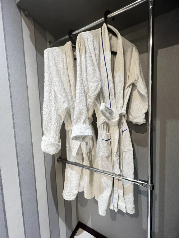 В номере вас будут ждать телевизор и халат. Оснащение зависит от выбранной категории номера.