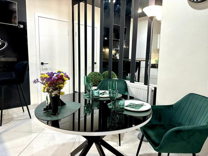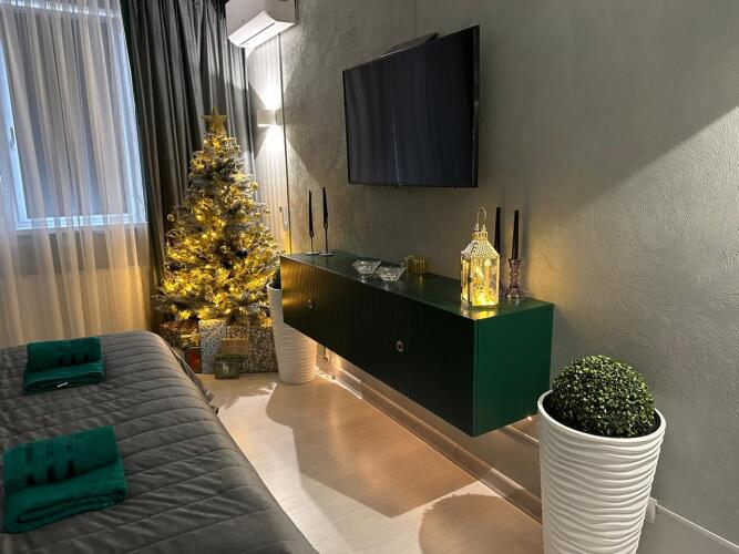 Апартаменты «Класса люкс Emerald room с красивым видом из окна» находятся в Калининграде. Неподалёку: дворец спорта «Янтарный», супермаркет «Виктория», фудкорт, остановка общественного транспорта, транспортная развязка на море, аэропорт. В доме: кофейня, «СушиХаус», салон красоты, магазин одежды.
