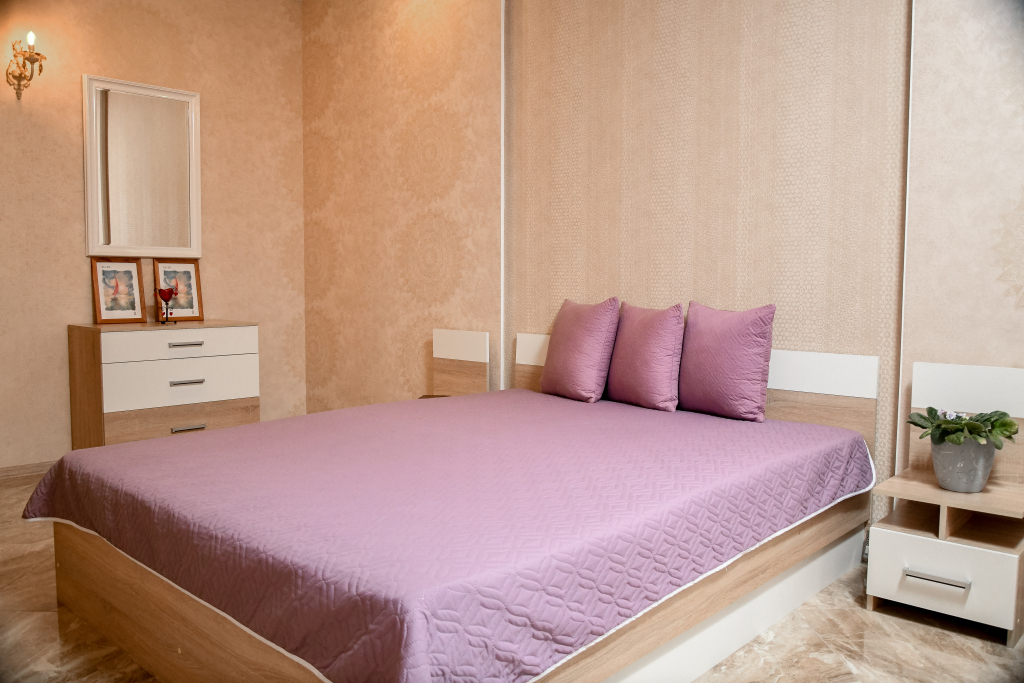 Номер уютно обставлен и оснащён необходимым, чтобы отдохнуть после долгого и насыщенного дня. Имеются телевизор. Оснащение зависит от выбранной категории номера.