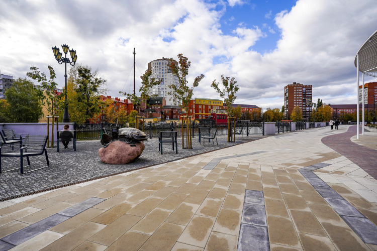Территория дома закрытая и охраняемая, во дворе — детская площадка. В доме работает лифт. Гостям доступно бесконтактное заселение.