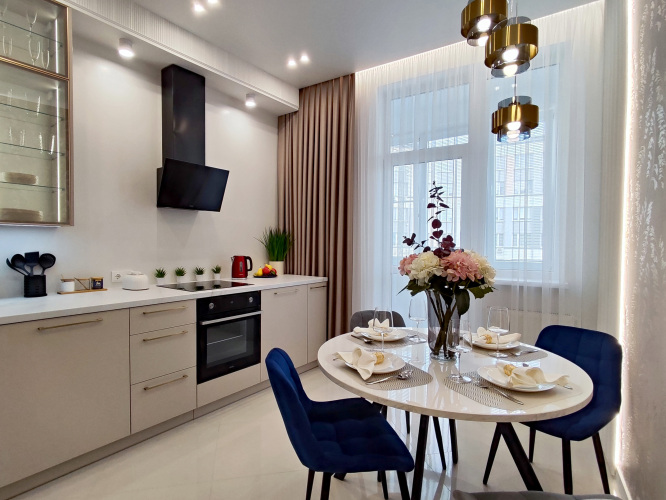 В квартире две изолированные комнаты, лоджия и холл. Две двуспальные кровати с ортопедическими матрасами и дополнительное спальное место. Отдельная кухня позволит готовить. В комнатах скоростной Wi-Fi, телевизоры Smart TV.
