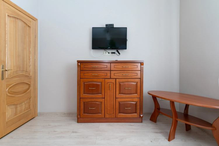 В номере гостей ждут телевизор и халат. Оснащение зависит от выбранной категории номера.