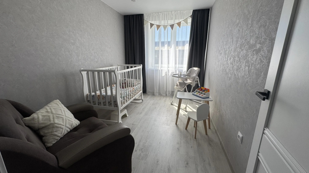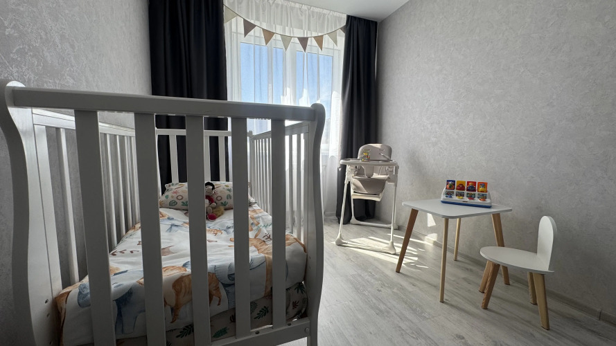 Также есть детская комната, в которой есть детская кроватка, стульчик для кормления малыша, горшок, ступенька, столик со стулом, кресло-кровать.