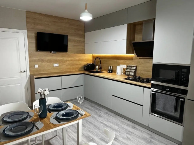 В квартире доступно автономное отопление. Заселение бесконтактное. Квартира оборудована для проживания, имеются: посудомоечная машина, мультиварка, стиральная машина, Sony PlayStation 4, средства гигиены, утюг, гладильная доска, пылесос. В каждой комнате — телевизор.
