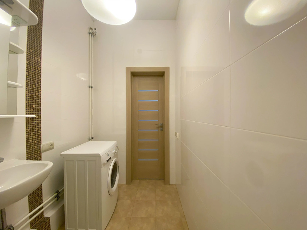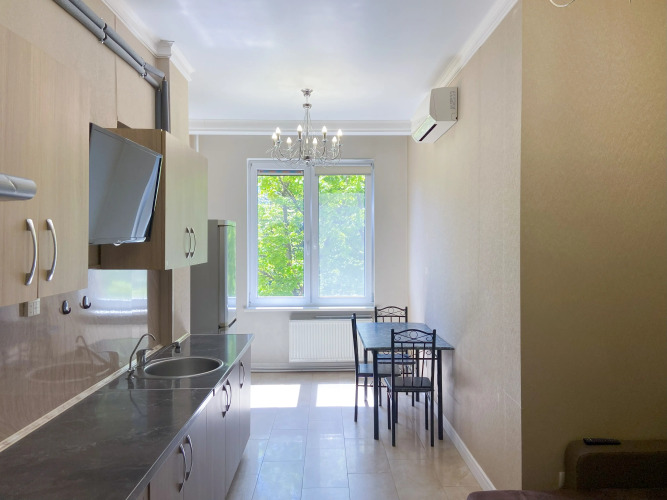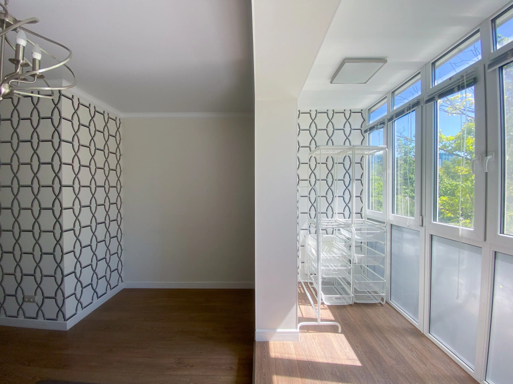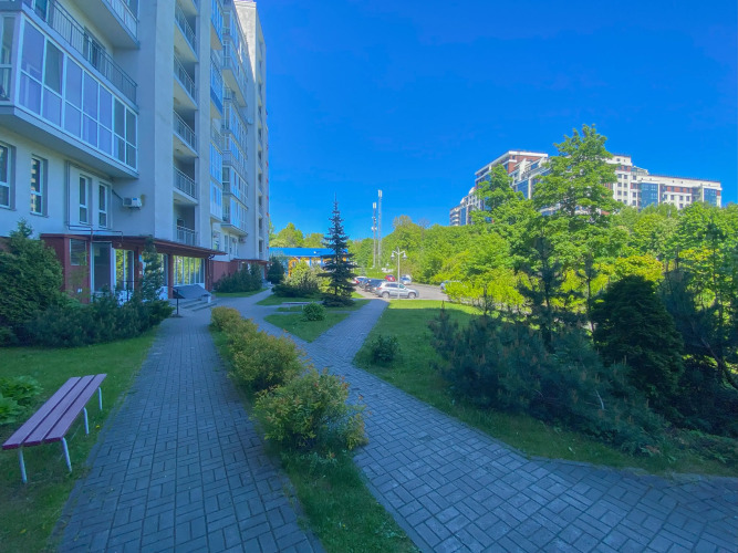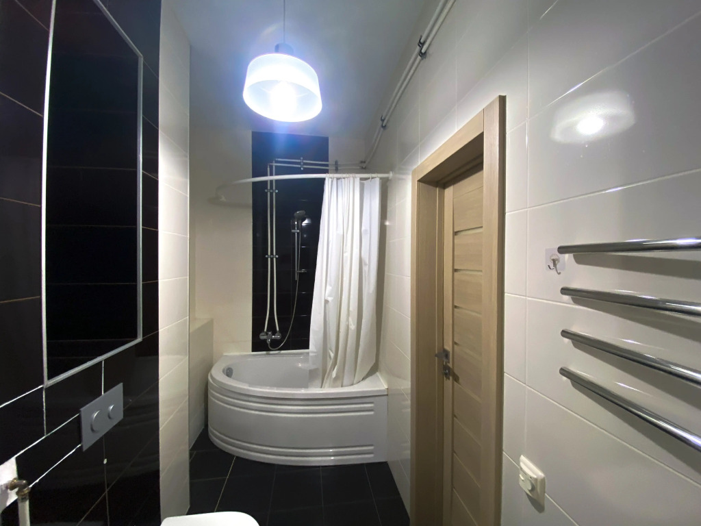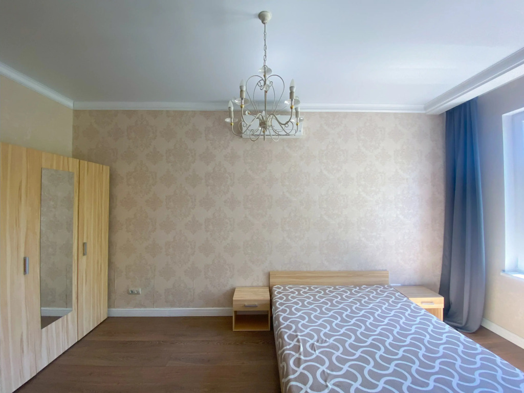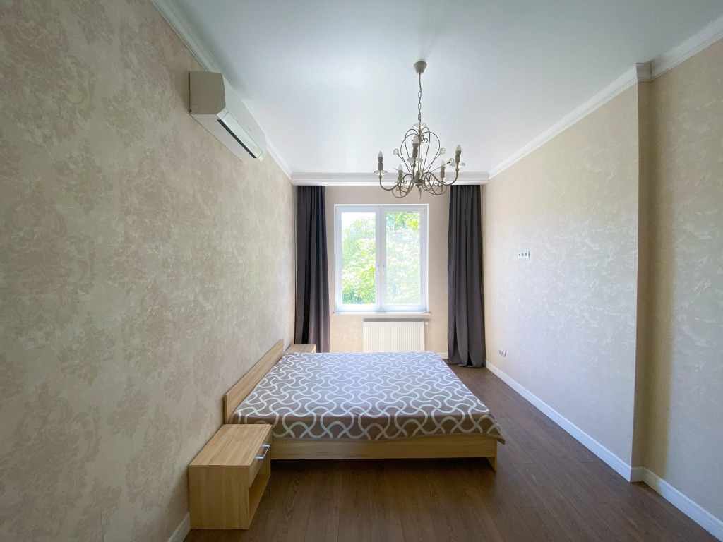 В квартире 2 изолированные комнаты: спальня с двуспальной кроватью, шкафом, и кондиционером, гостиная/вторая комната с раскладным диваном и остеклённой лоджией с видом во двор. Также есть кухня-гостиная с телевизором и обеденной зоной, 2 санузла (один с ванной, второй — гостевой), кондиционеры в спальне и в гостиной, постельное бельё и полотенца включены.