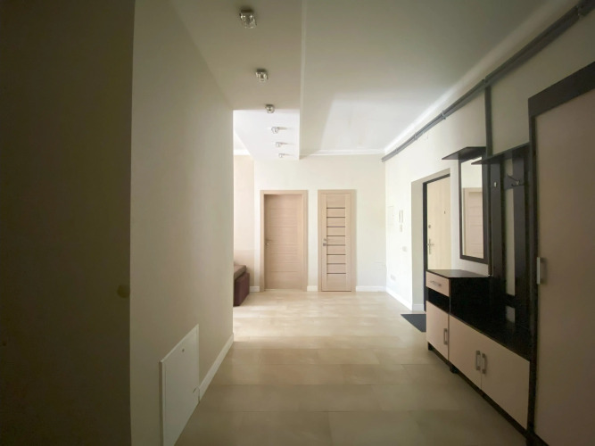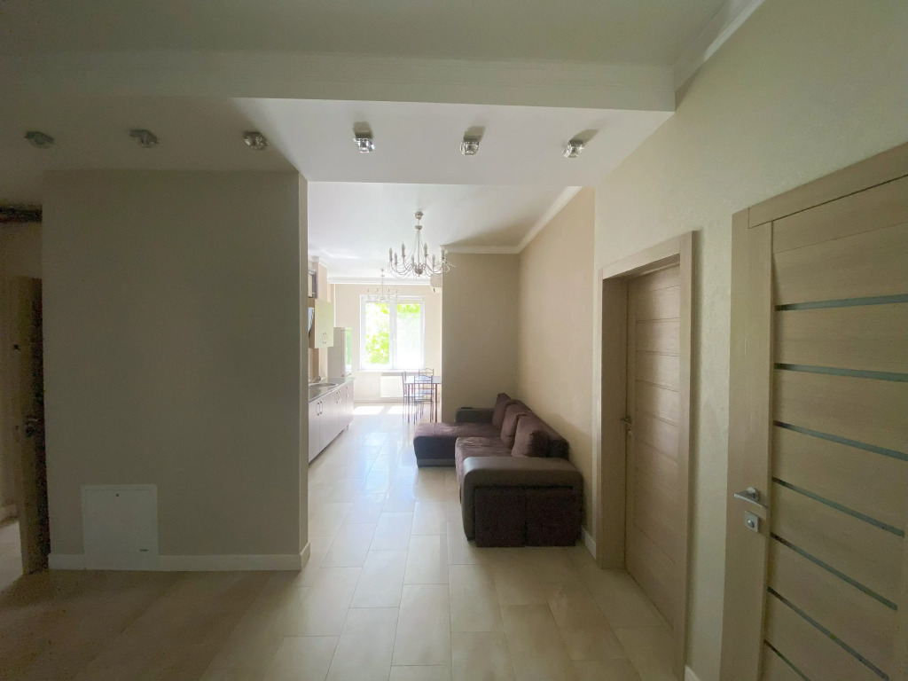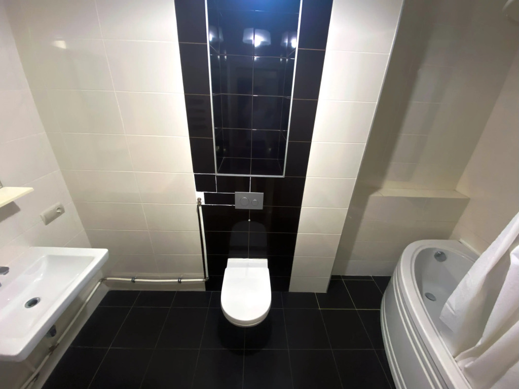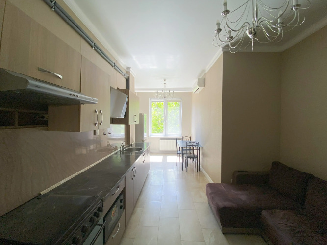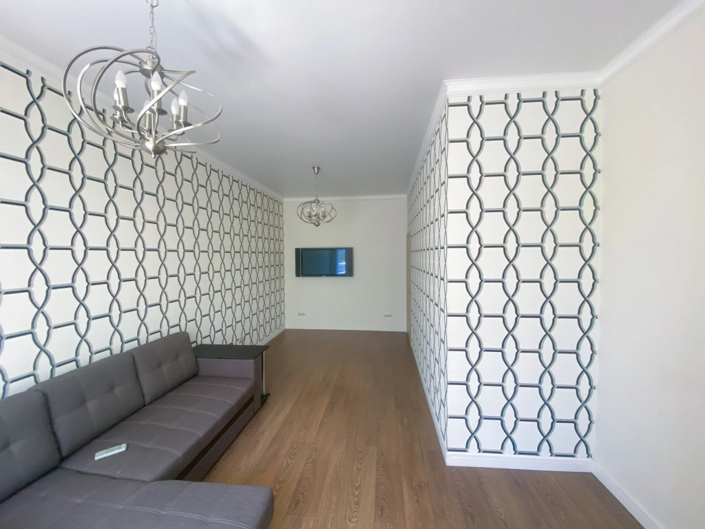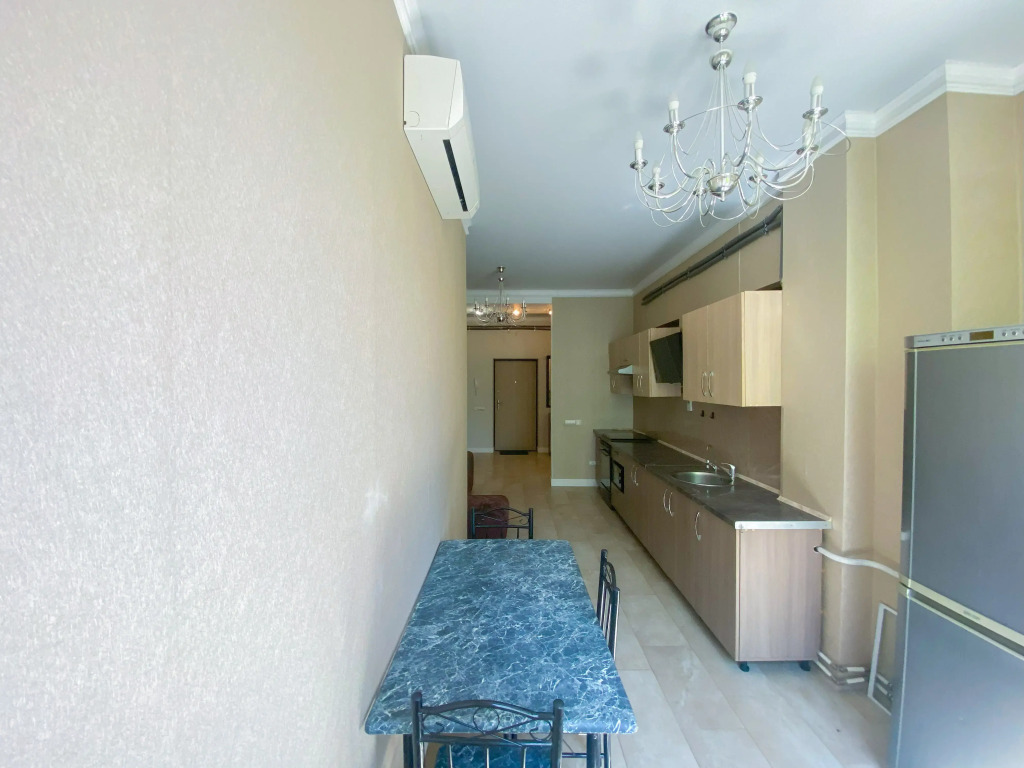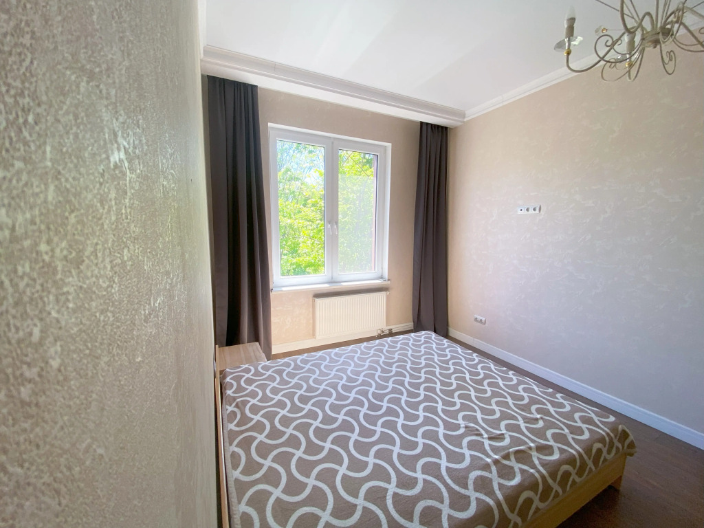 В квартире 2 изолированные комнаты: спальня с двуспальной кроватью, шкафом, и кондиционером, гостиная/вторая комната с раскладным диваном и остеклённой лоджией с видом во двор. Также есть кухня-гостиная с телевизором и обеденной зоной, 2 санузла (один с ванной, второй — гостевой), кондиционеры в спальне и в гостиной, постельное бельё и полотенца включены.