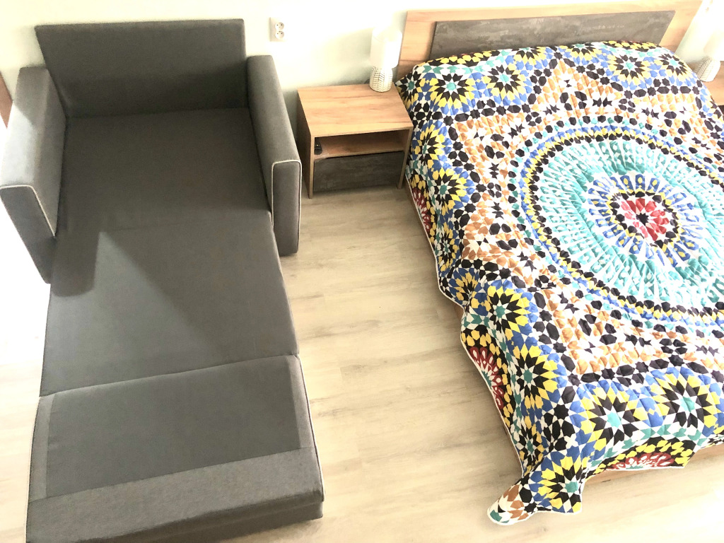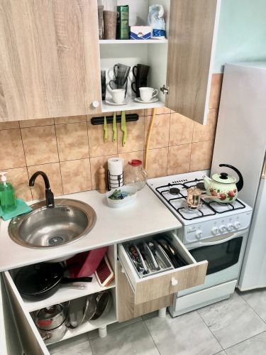 В апартаментах для удобства гостей имеются телевизор, холодильник, газовая плита, микроволновая печь, фен, утюг, гладильная доска, стиральная машина, посуда, средства гигиены.