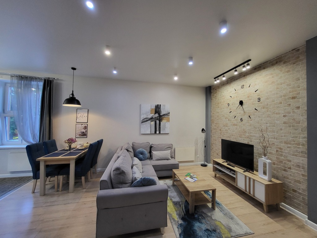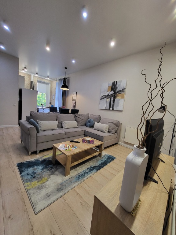 Квартира с современным ремонтом для проживания до 4-х гостей. Имеется необходимая бытовая техника, посуда, столовые приборы, средства гигиены, постельное бельё, комплекты полотенец, зонт, мини-аптечка, швейные принадлежности.