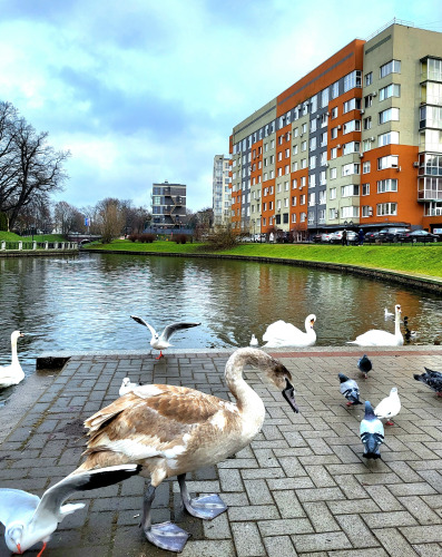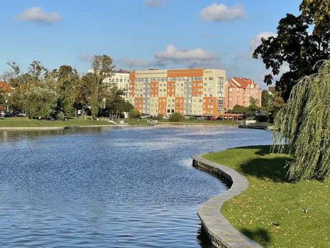 Квартира в центре у озера находятся в историческом центре Калининграда, рядом с музеем Янтаря, на берегу Верхнего озера. Во дворе имеется закрытая территория с парковкой. Квартира располагается в пешей доступности от центральной площади Победы, железнодорожного вокзала, центрального рынка, супермаркетов, остановок общественного транспорта. Вокруг озера есть прогулочные дорожки и велодорожки, множество кафе и ресторанов. Неподалёку располагается современный парк детских аттракционов и развлечений «Юность».