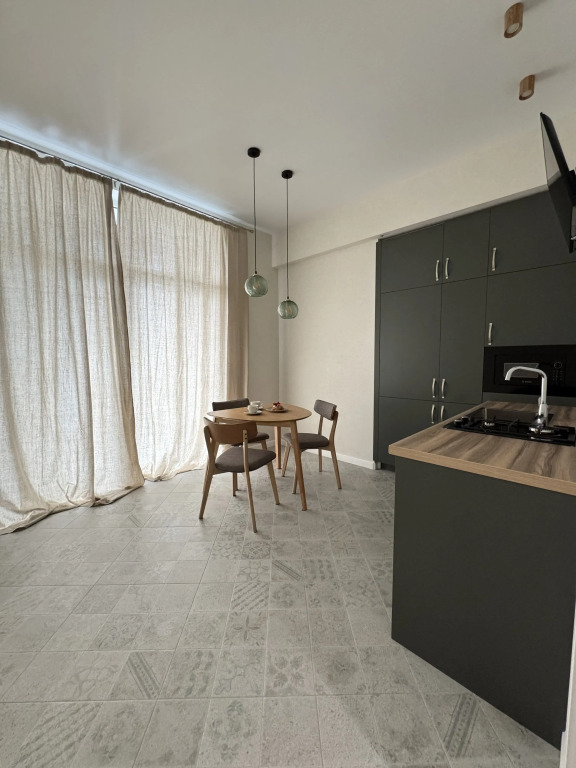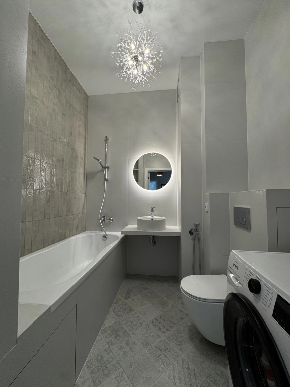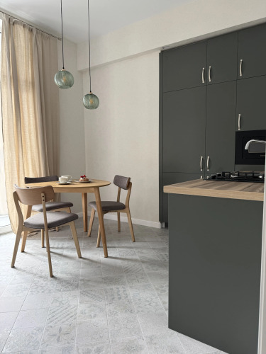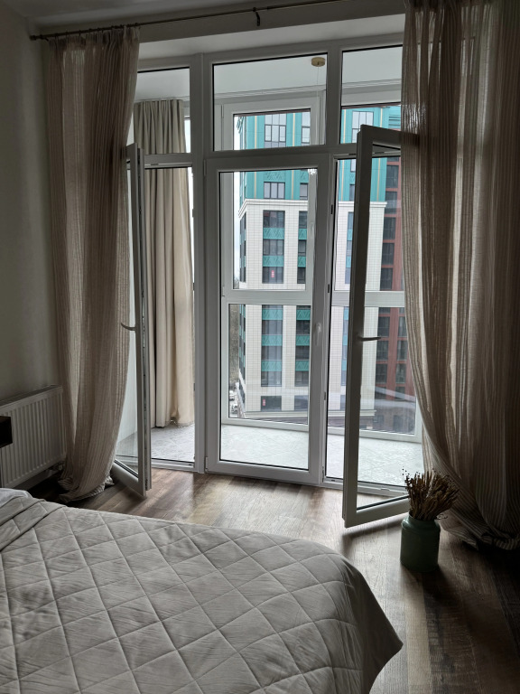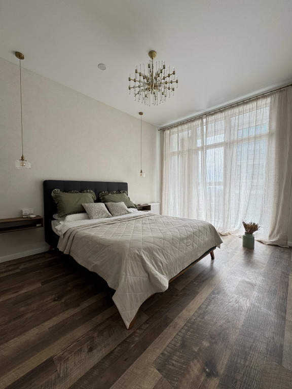 Ремонт выполнен из европейских материалов. В распоряжении гостей натуральный текстиль, ортопедический матрас, ресторанный фарфор, бытовая техника, smart TV, Wi-Fi, автономное отопление, гардеробная. Предоставлено необходимое для комфорта гостей. Есть круглосуточная охрана, умный дом, детская площадка, подземный паркинг.