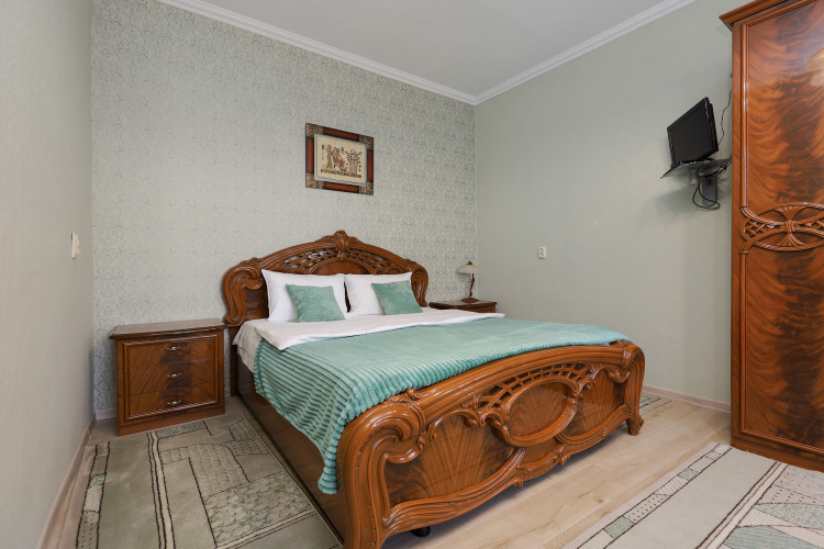 Номер уютно обставлен и оснащён необходимым, чтобы отдохнуть после долгого и насыщенного дня. Имеются телевизор. Оснащение зависит от выбранной категории номера.