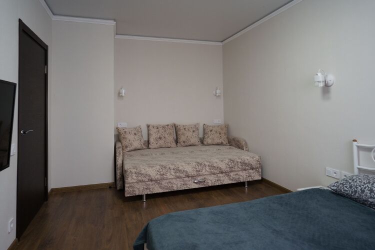 Номер уютно обставлен и оснащён необходимым, чтобы отдохнуть после долгого и насыщенного дня. Имеются телевизор. Оснащение зависит от выбранной категории номера.