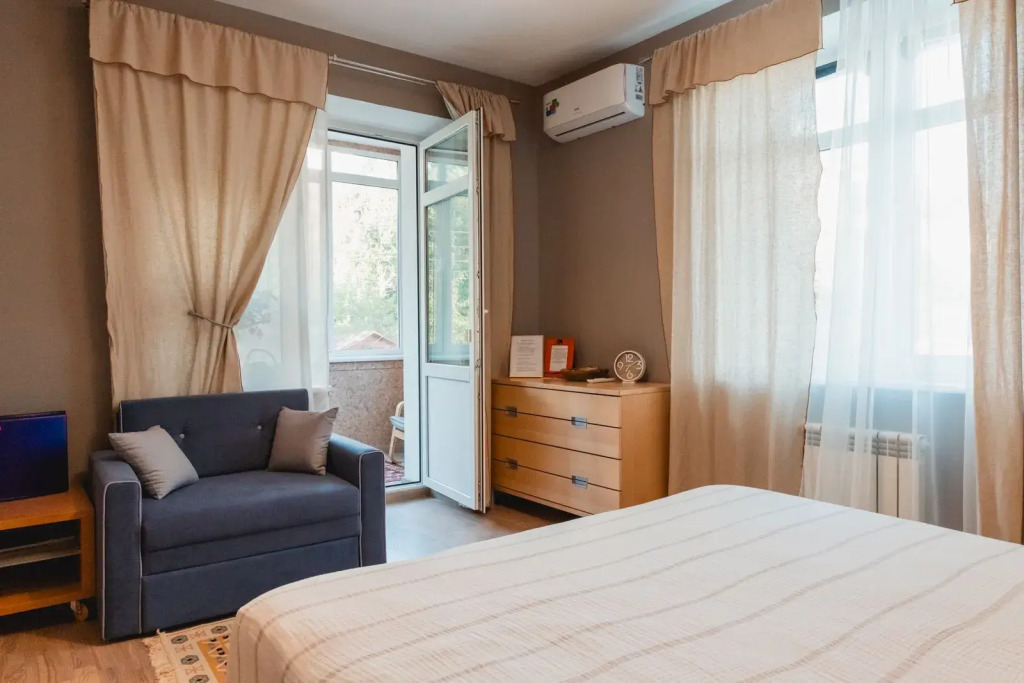 Квартира оснащена всем необходимым для отдыха. Для гостей с детьми предусмотрено кресло-кровать с полноценным спальным местом. В стоимость входит завтрак.