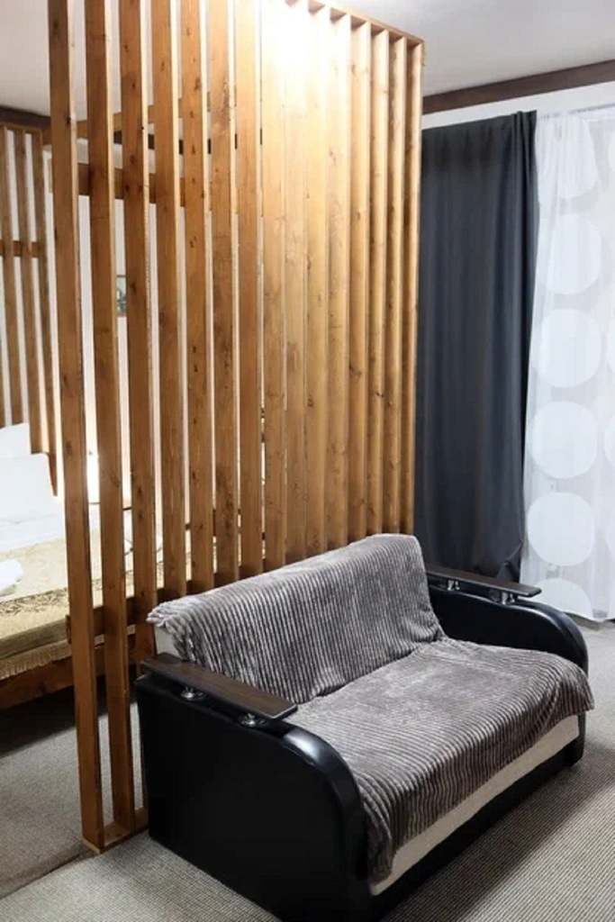 За территорией отеля в 2 км находится отдельно стоящий коттедж с 1 спальней. Уютный теплый современный дом-дуплекс ожидает своих гостей. Полностью меблированный. Данная часть дома с отдельным входом одна комфортабельная спальня, кухня гостиная с двуспальным раскладывающимся диваном, полностью оборудованная кухня с плитой, микроволновкой, холодильником, чайником, необходимая посуда и с/узел.