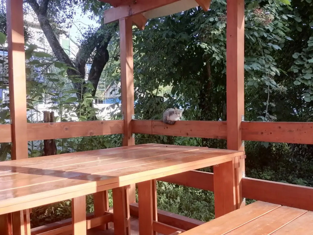 Гостевой дом Хижина, адрес на карте Каменномостский, Речная улица, д.10, с описанием номеров и возможностью онлайн бронирования на сайте ВашОтель.RU , цены проживания и удобства.