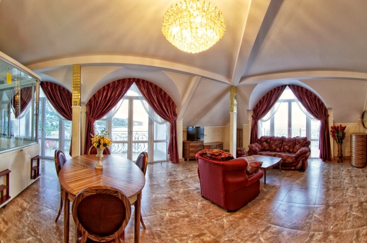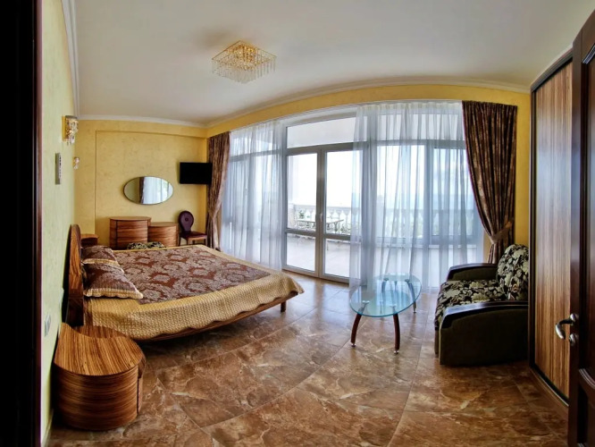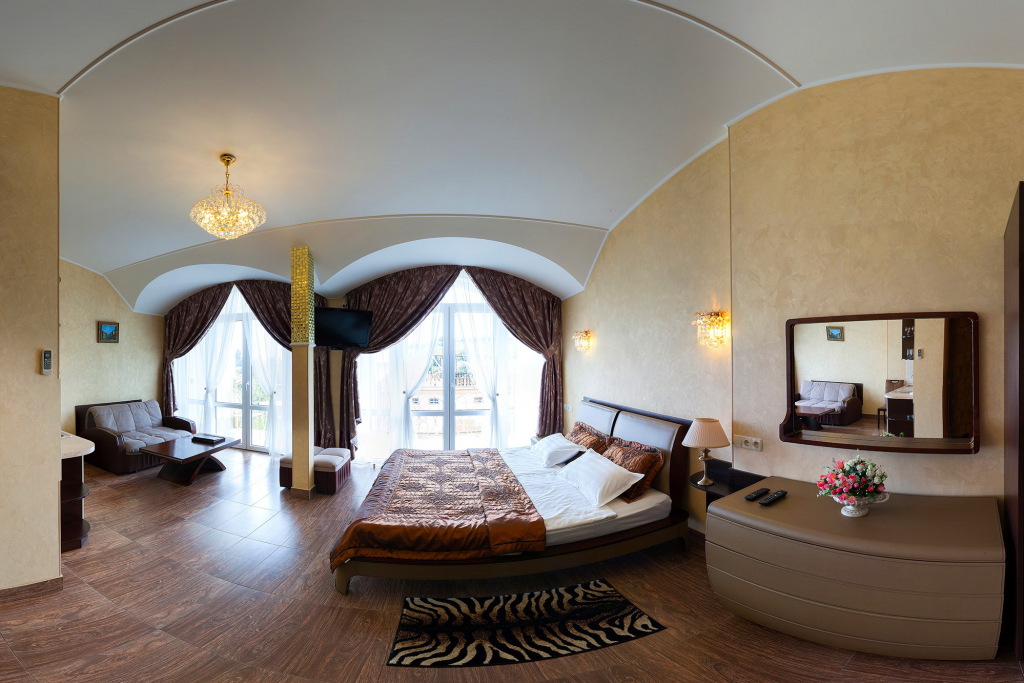 В номере вы найдёте телевизор и халат. Оснащение зависит от выбранной категории номера.