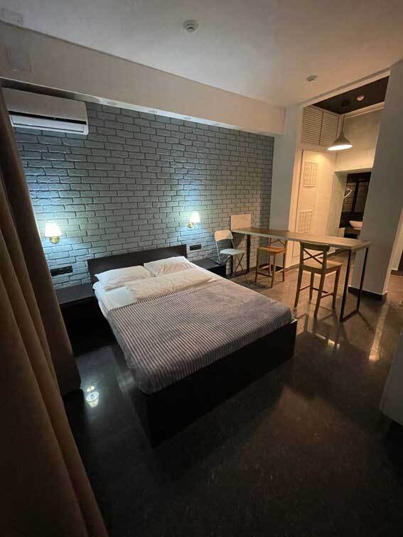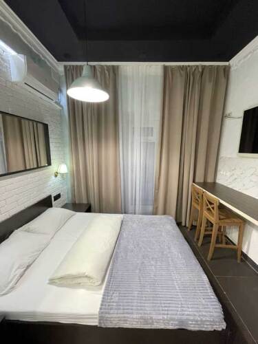 Номер уютно обставлен и оснащён необходимым, чтобы отдохнуть после долгого и насыщенного дня. Имеются телевизор. Оснащение зависит от выбранной категории номера.