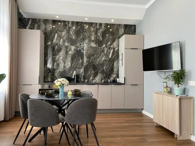 Попробовать новые блюда и отдохнуть можно в ресторане. Кафе апартаментов — удобное место для перекуса. Wi-Fi на территории поможет всегда оставаться на связи. Среди услуг для красоты и здоровья — солярий.