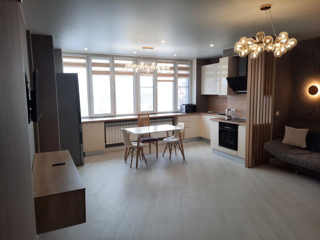 К услугам гостей бесплатный Wi-Fi и TV. В апартаментах есть: мебель, 4 спальных места, постельное бельё, полотенца, набор посуды, кухонные принадлежности, холодильник, плита, микроволновая печь, электрочайник, гладильная доска, сушилка, утюг, фен, стиральная машина, напольный 3-скоростной вентилятор «Тефаль» с ночным режимом и водонагреватель.