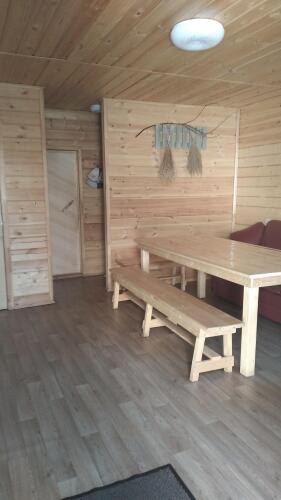Дома с открытой террасой состоят из гостиной и спальной комнаты. Все комнаты меблированы, есть кухонный гарнитур, плита, холодильник, ТВ, DVD, караоке, спутниковое телевидение. В домах финская сауна, душевая кабина, санузел. У домов есть мангальная зона и бесплатная парковка.