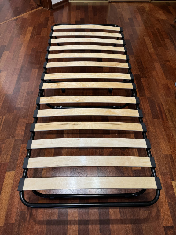 Дополнительно к спальным местам предлагается раскладушка с реечным дном и матрасом.