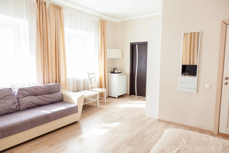 Номера категории «Апартаменты с двуспальной кроватью» располагаются на цокольном этаже.