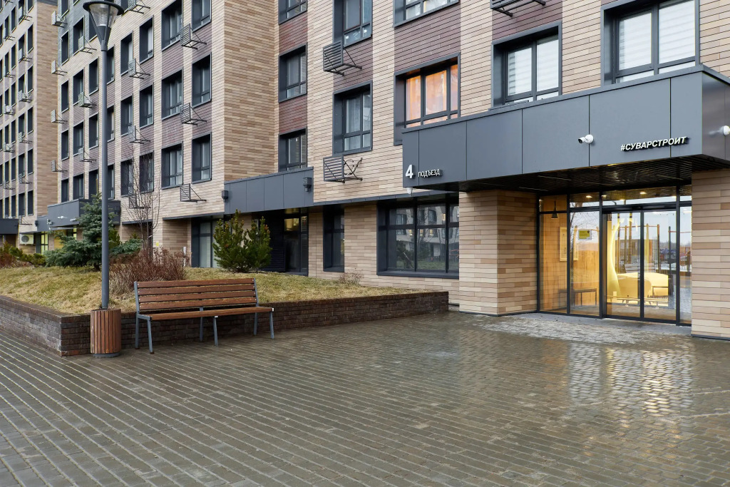 При въезде во двор, нужно набрать на домофоне номер квартиры, который будет выслан до заезда. Дверь автоматически откроется.