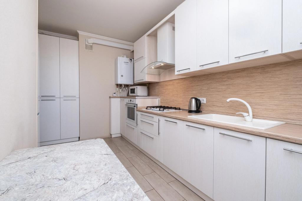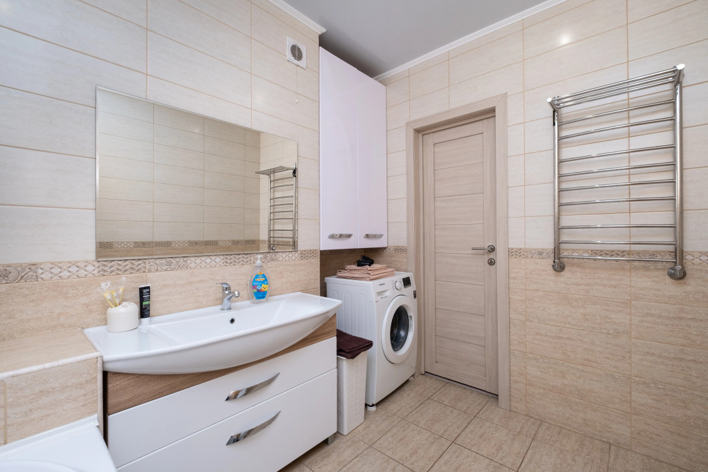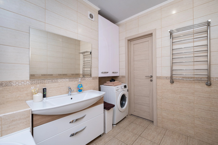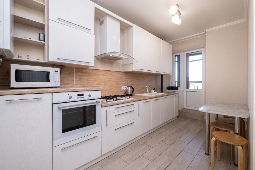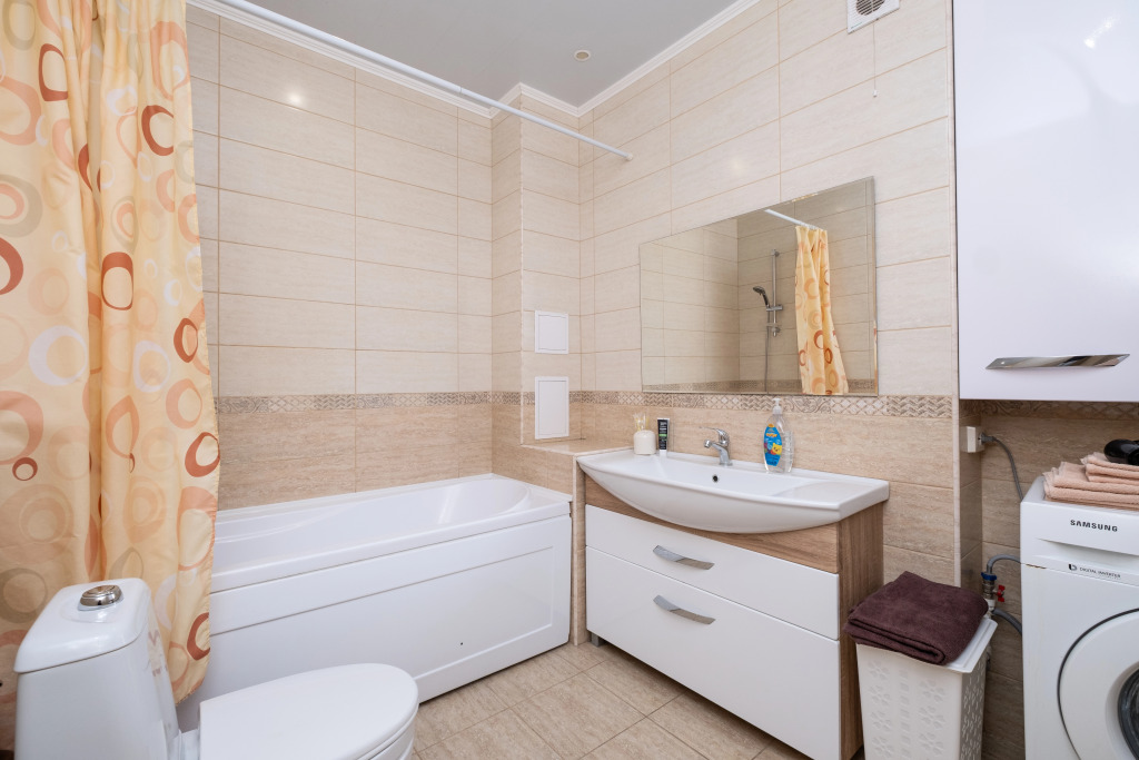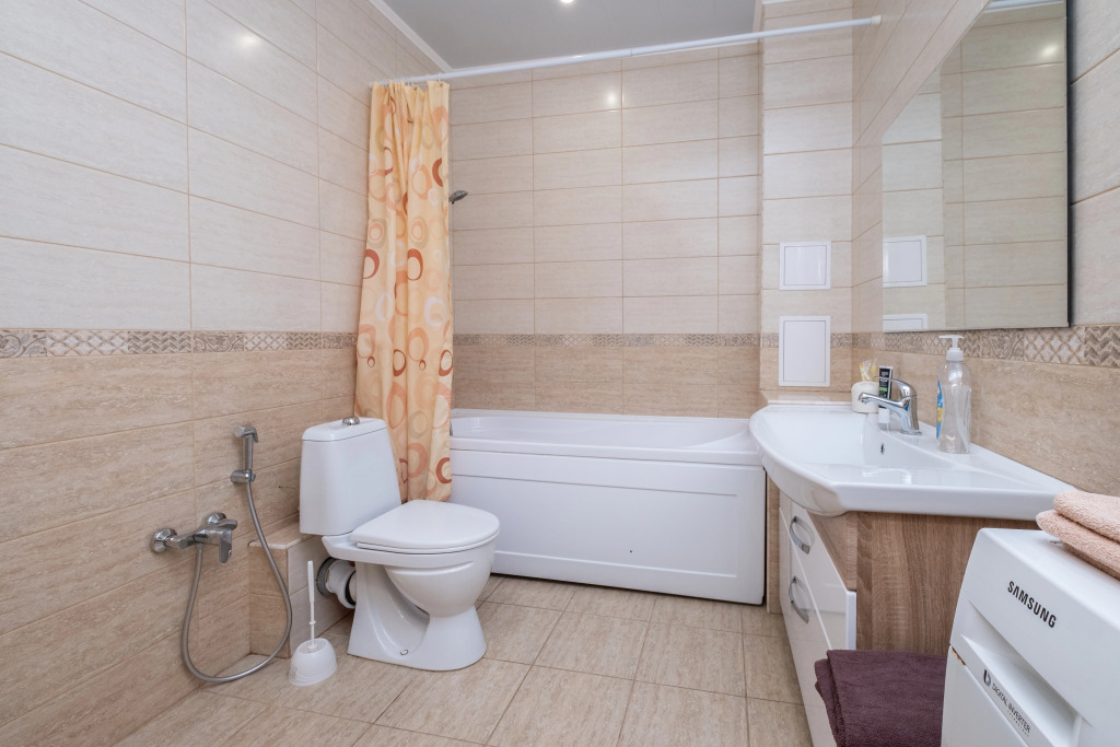 В квартире работает индивидуальное отопление, есть стиральная и посудомоечная машины, микроволновая печь, фен. Гостей ждёт комплект командировочного, включающий отчётные документы, договор, счет на оплату, акт, а также предметы личной гигиены и бытовые принадлежности.