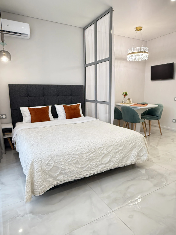 Для удобства гостей имеется телевизор с функцией смарт, шампунь, гель для душа, набор гигиенических принадлежностей, водонагреватель. Гостям предоставляется чай, кофе и сладости.