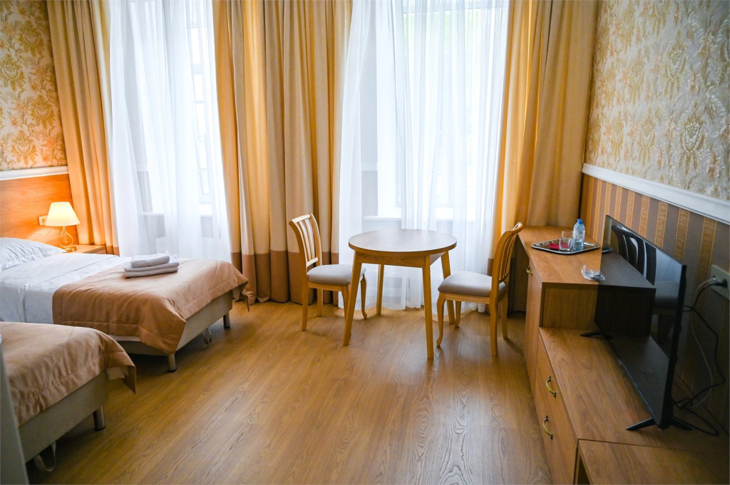 В номере имеется телевизор. Оснащение зависит от выбранной категории номера.