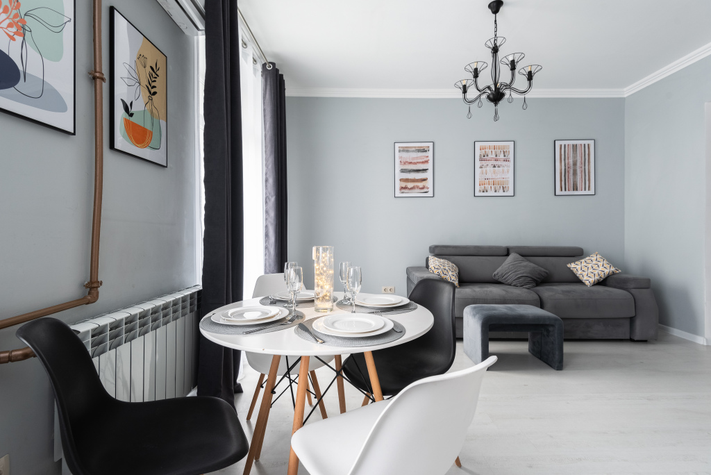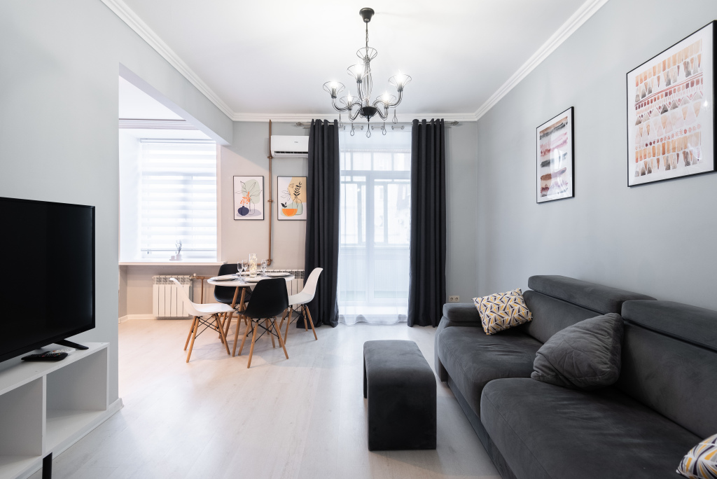В распоряжении гостей есть: бесплатный Wi-Fi, бесплатная парковка во дворе, двуспальная кровать, диван-кровать, телевизор, постельное бельё и полотенца, полностью оборудованная кухня, ванна, гигиенические принадлежности, тапочки и халаты, фен, стиральная машина, утюг.