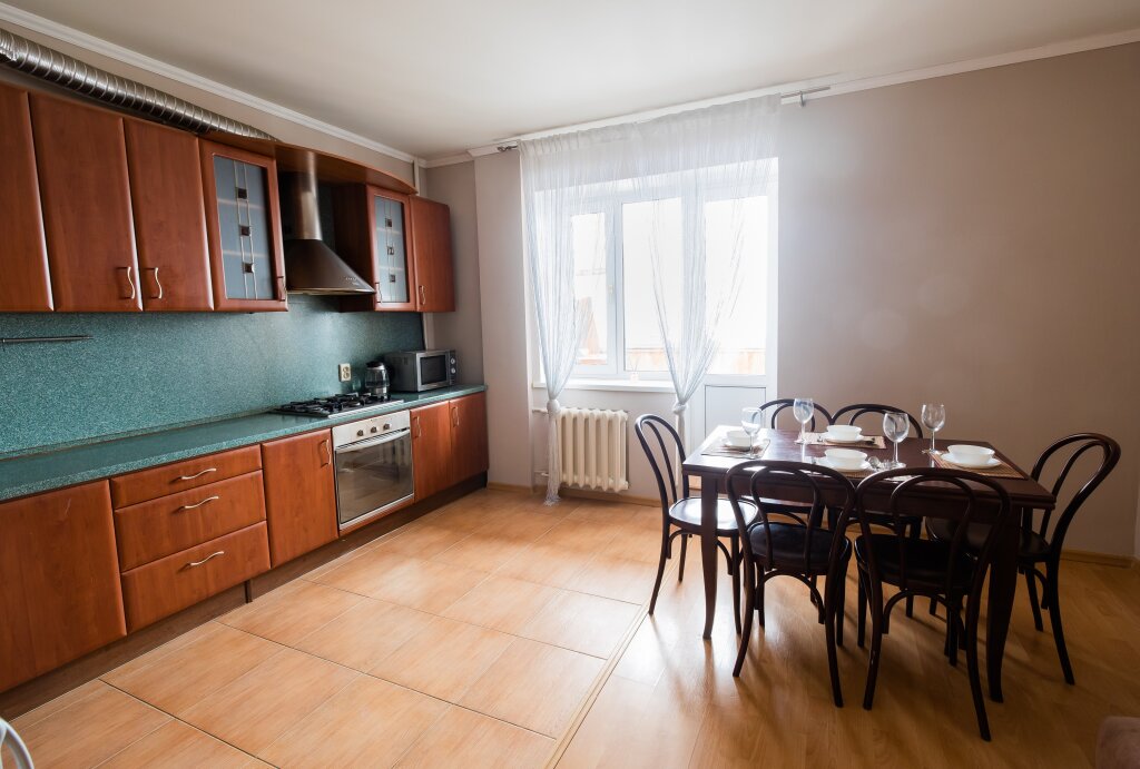 В апартаментах работает интернет, Smart TV. Перед каждым заездом проводится уборка, смена белья и полотенец. В апартаментах имеется спальня, ванная комната, кухня.