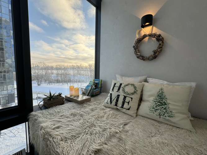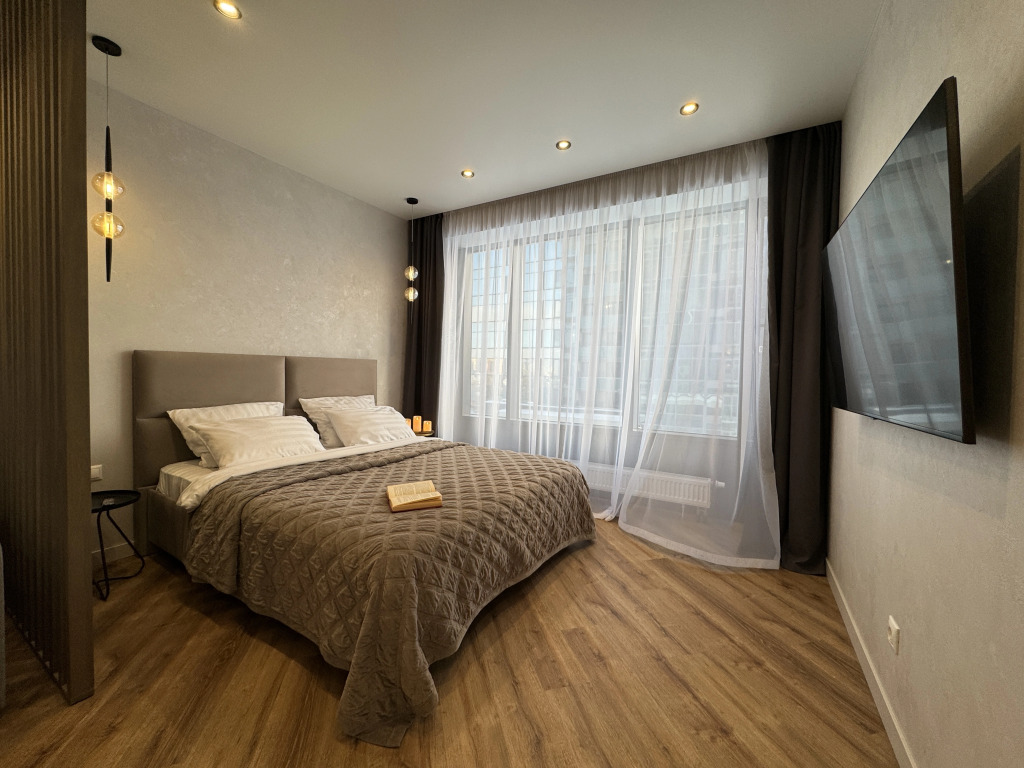 Апартаменты с Уютной Лоджией в ЖК Аtlantis Delux, адрес на карте Казань, улица Шоссейная, д.57, подъезд 3, с характеристиками номеров и правом онлайн бронирования на площадке vashotel.ru , стоимость проживания и удобства.