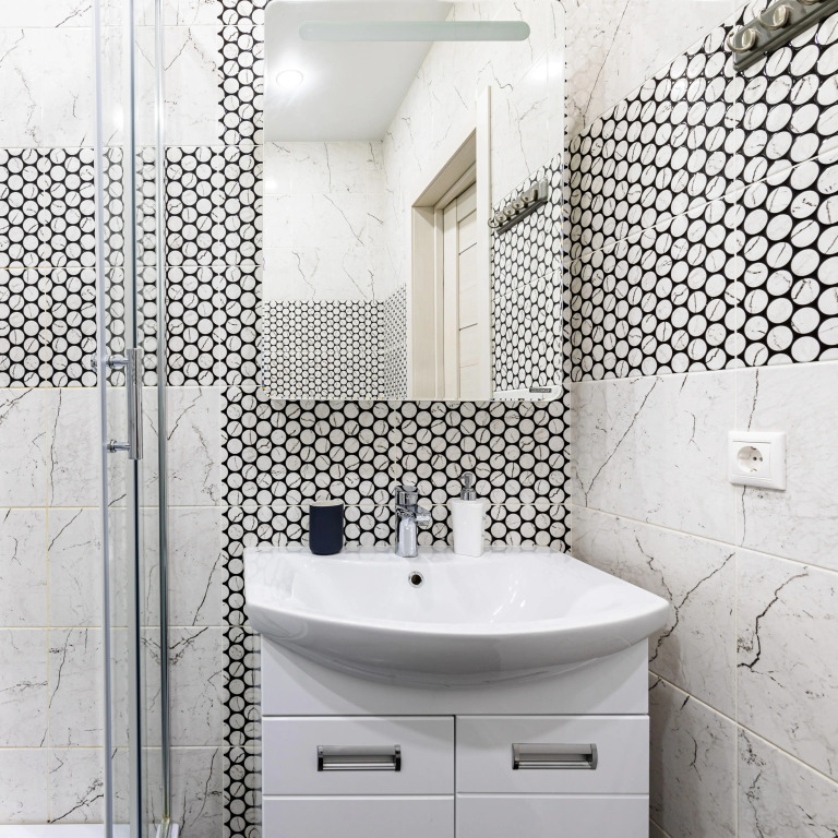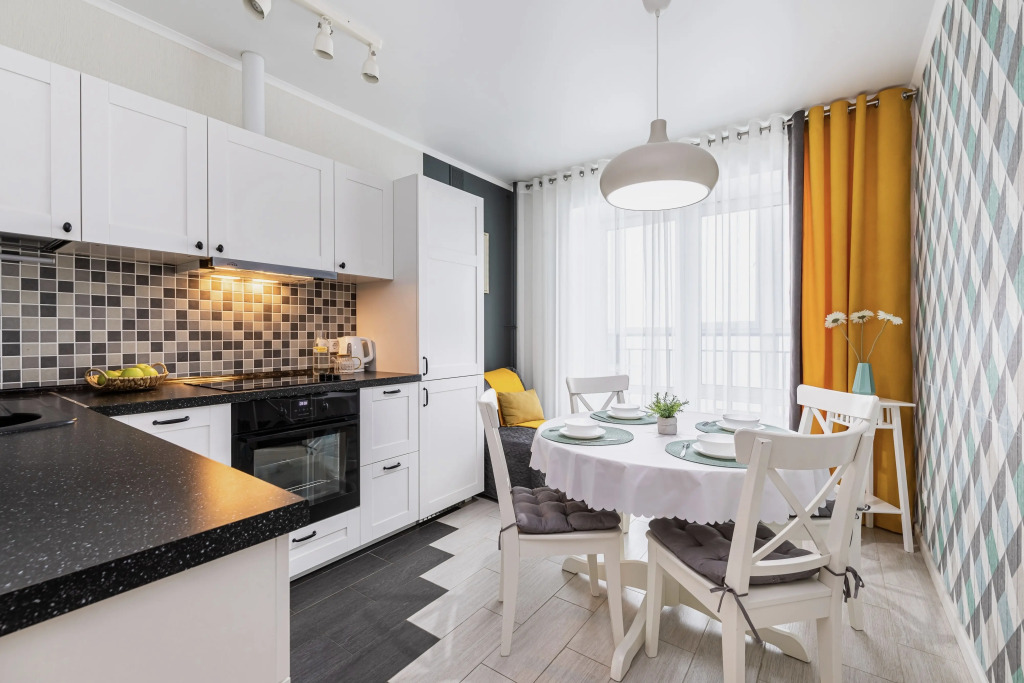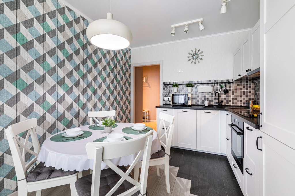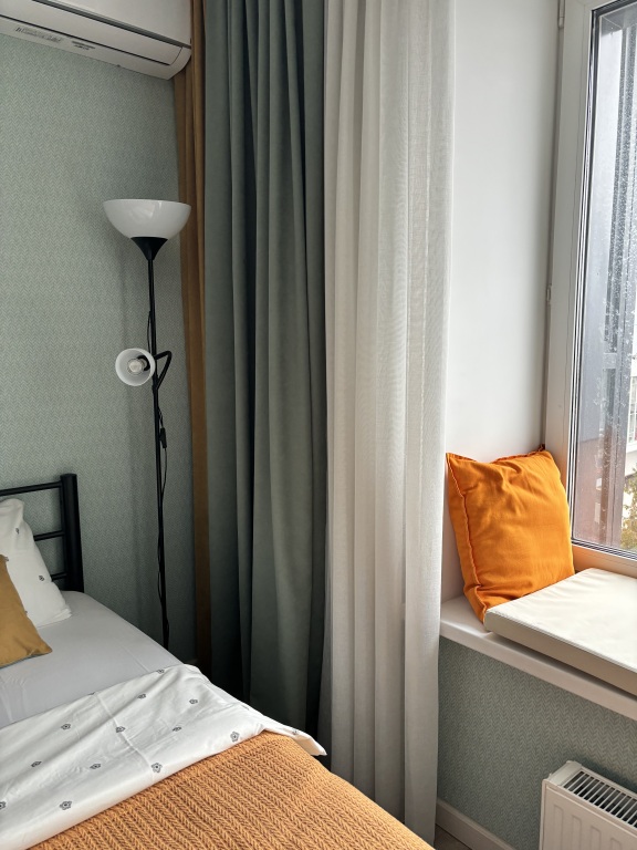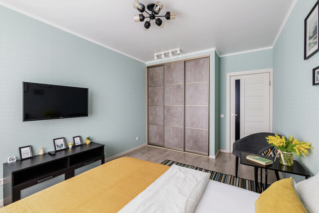 В квартире комфортно будет разместиться до 4 взрослых: имеются двуспальная кровать с ортопедическим матрасом, кресло-кровать и раскладная кровать. По запросу предоставляется детская кровать – манеж.