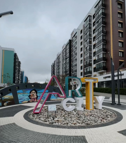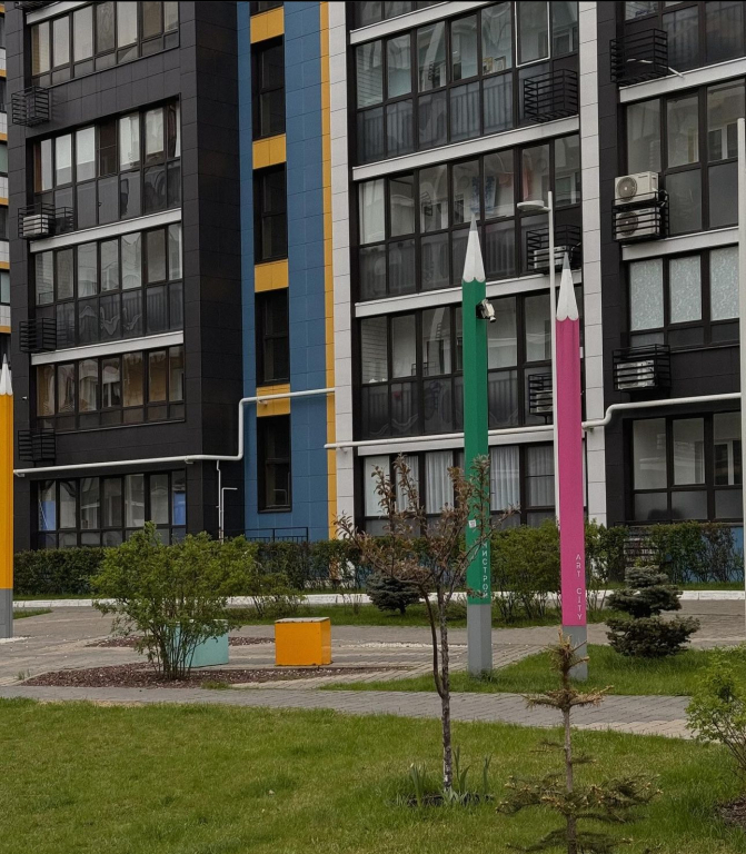 Закрытая территорией двора с видеонаблюдением, прогулочные и игровые пространства для людей разных возрастов и интересов, зоны для занятия спортом и подвижными играми, пешеходный бульвар с арт-объектами и фонтаном в тёплое время года.