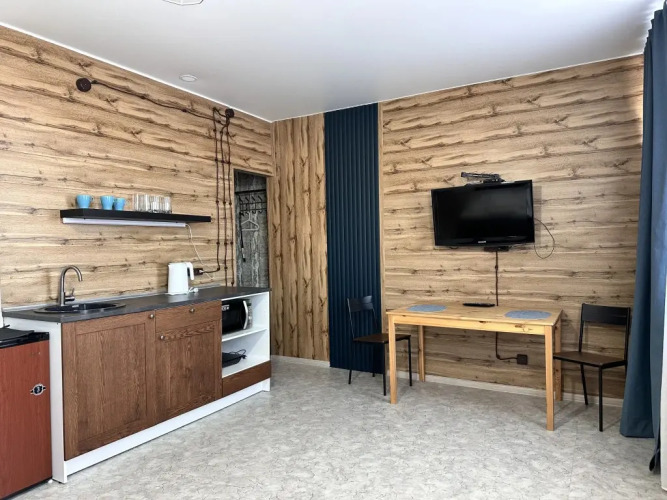В номере вы найдёте телевизор. Оснащение зависит от выбранной категории номера.