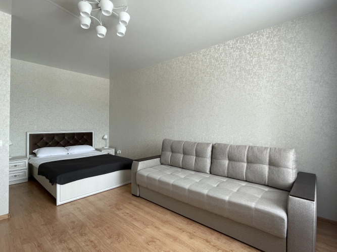Однокомнатная квартира расположена в новом кирпичном доме на центральной улице города. В апартаментах установлена мебель, бытовая техника и бесплатный Wi-Fi.