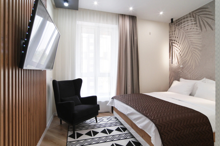 Апартаменты на Комсомольской, адрес на карте Ханты-Мансийск, улица Комсомольская, 56, с характеристиками номеров и доступностью онлайн бронирования на ресурсе vashotel.ru , стоимость проживания и удобства.
