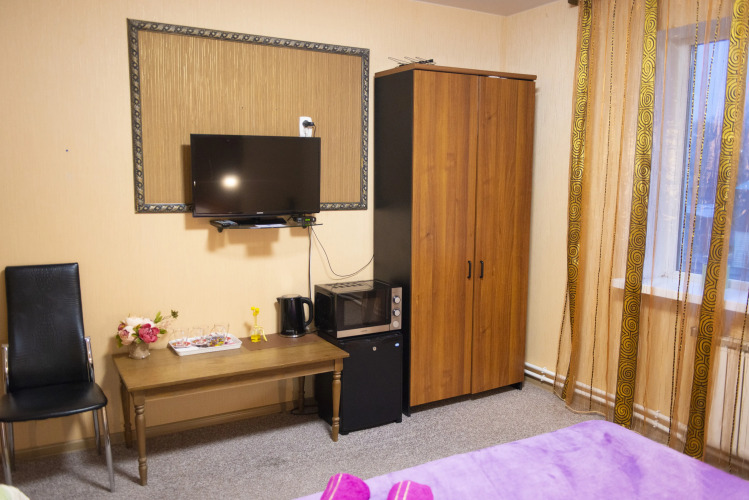 Номер уютно обставлен и оснащён необходимым, чтобы отдохнуть после долгого и насыщенного дня. Имеются телевизор и халат. Перечисленные услуги есть не во всех номерах.
