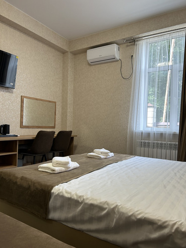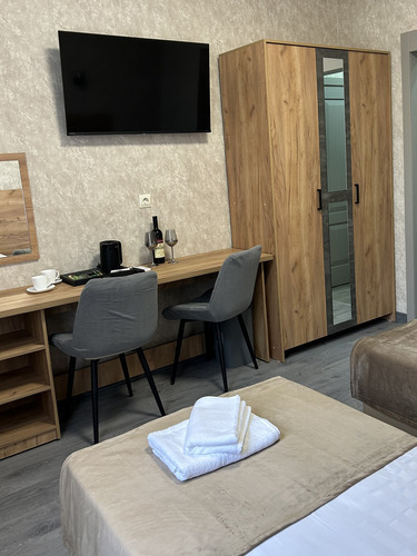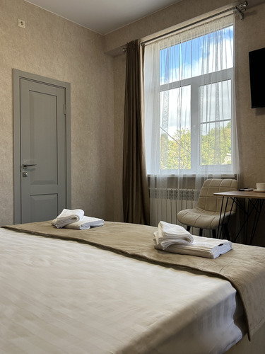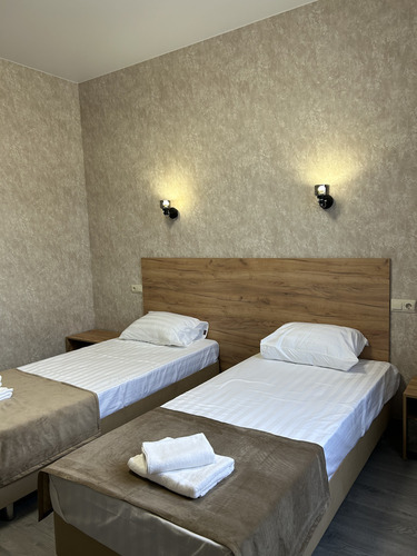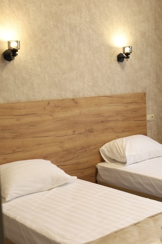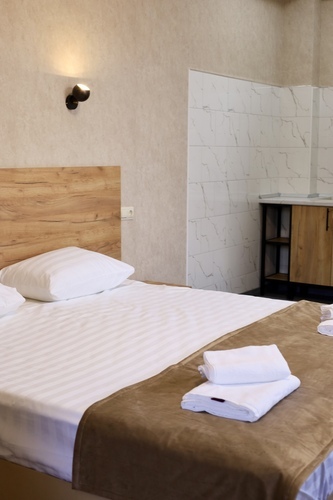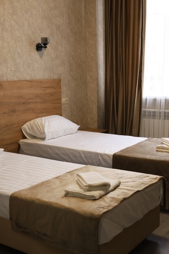Номер категории «Стандарт» площадью 16 м2 вмещает 2х человек и создан для комфорта: - Уютная двуспальная кровать или две односпальные - Светлый просторный интерьер в теплых тонах - Современные удобства: ТВ, Wi-Fi, чайный набор, кондиционер, холодильник - Ванная комната с душем, средствами гигиены