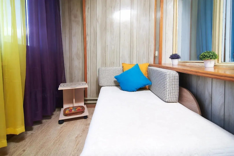 Номер уютно обставлен и оснащён необходимым, чтобы отдохнуть после долгого и насыщенного дня. Имеются телевизор. Перечисленные услуги есть не во всех номерах.
