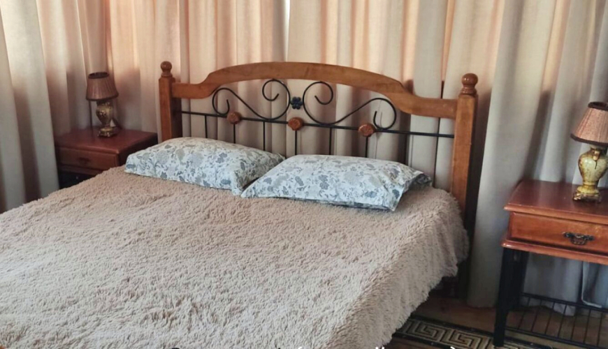 Коттедж является двухэтажным домом на участке 3 сотки, подходит для отдыха компании до 8 человек, например, двух семей с детьми. В доме сделан ремонт. Есть собственный двор с возможностью парковки двух машин. Во дворе есть беседка для отдыха и мангал, где можно пожарить шашлык.