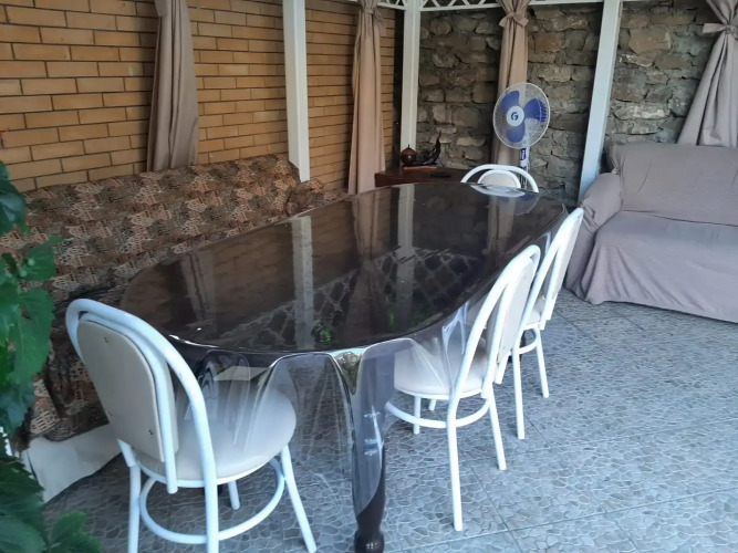 Горячая вода и отопление регулируются собственной котельной. На улице: беседка со столом и холодильником, мангал, шампуры, решетка.